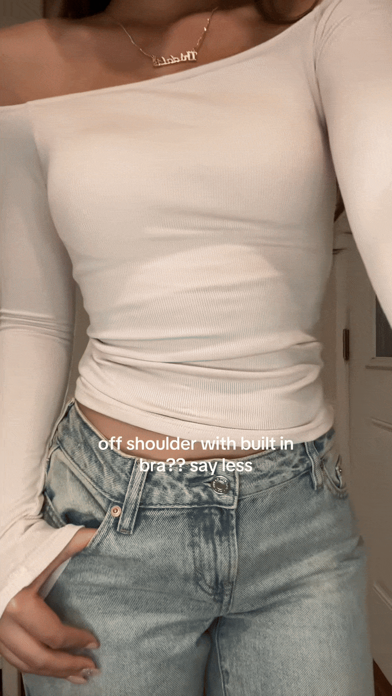 The Noovou Off-Shoulder Top is crafted with luxe ribbed fabric and built-in customizable padding for effortless support.